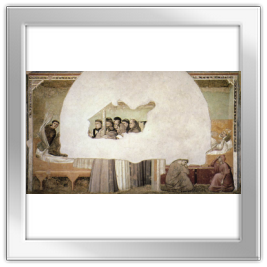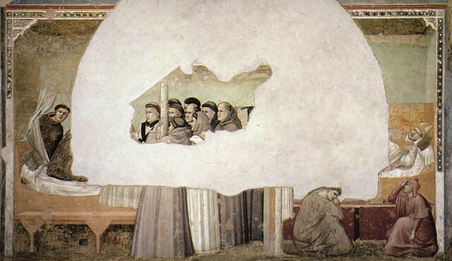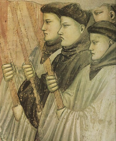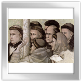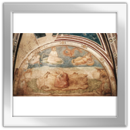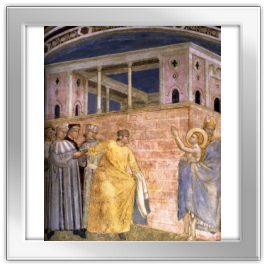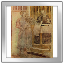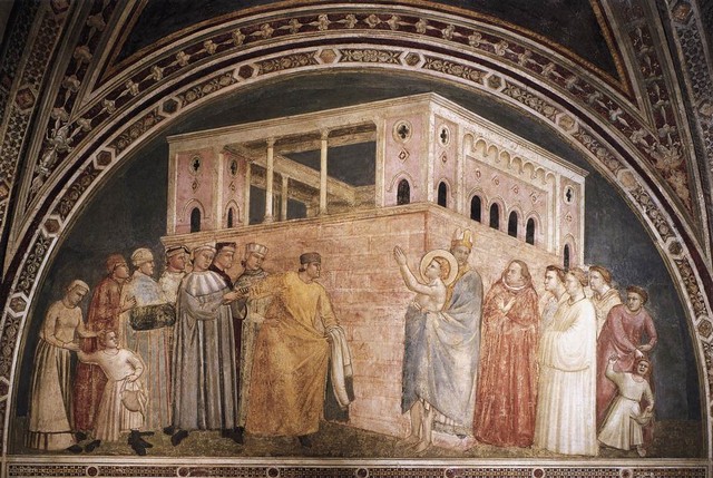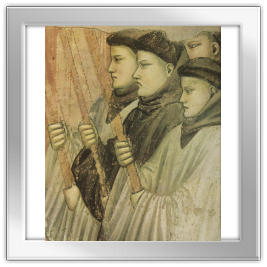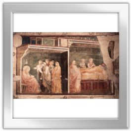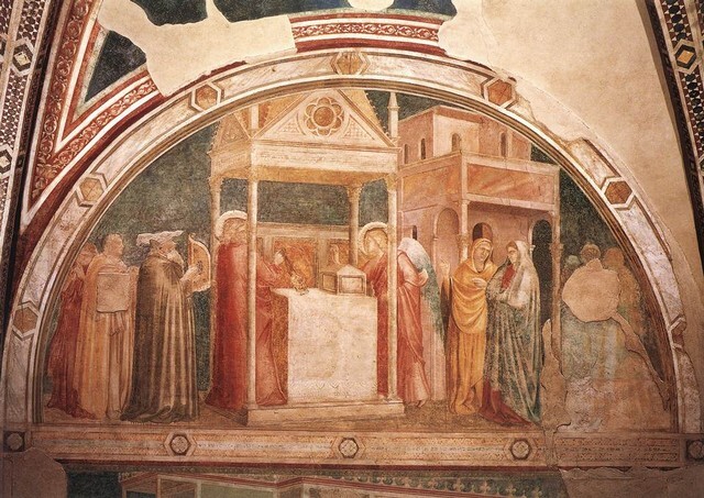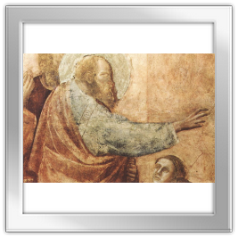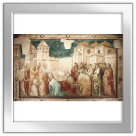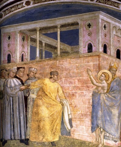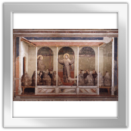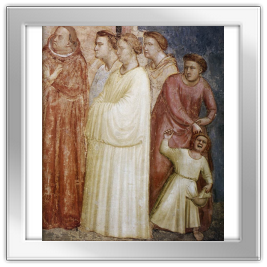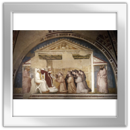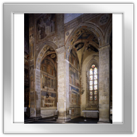Росписи в церкви "Святого Креста" во Флоренции. В конце 1313, Джотто вернулся во Флоренцию и заполучил новых клиентов. Художник, который уже имел опыт работы во францисканской церкви в Ассизи, был приглашён для работы над росписями стен в самой большой францисканской церкви Италии во Флоренции - Санта-Кроче. В ней Джотто продолжал создавать фрески, вплоть до самой смерти. В соответствии с сведениями, сделанными флорентийским художником Лоренцо Гиберти (1378-1455), росписи Джотто украшали четыре капеллы. Несколько знатных Флорентийских семей также поручили создать серию икон, которые должны были для алтаря в Санта-Кроче. Но только две капеллы и один запрестольный образ, которые можно смело отнести к работам Джотто пережили разрушительное действие времени.