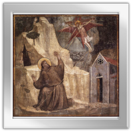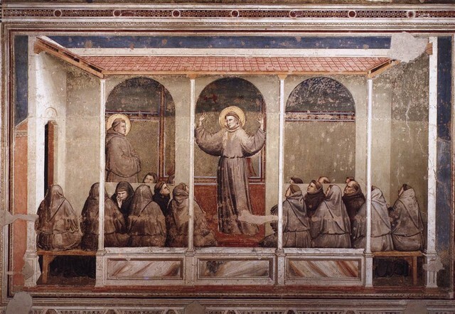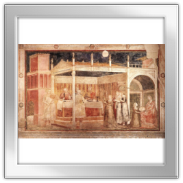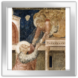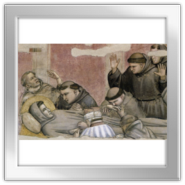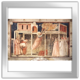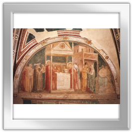 Росписи стен в капелле семейства Барди. Джотто также получил заказ на вторую из уцелевших капелл во Францисканской церкви Санта-Кроче во Флоренции. Росписи стен были профинансированы банкиром Ридольфо де Барди и его братом, которые совместно унаследовали банковский дом и коммерческие дела отца, которые включали поддержку хороших отношений с силами, определяющими «политику дня» - с Папой, с Неаполитанским правящим домом Анжу, и с партией Guelph. Ридольфо де Барди благодаря политике и деньгам был способен в течение следующих трех десятилетий финансировать создание фресок, вплоть до 1340 г., когда их банковский дом обанкротился. В капелле Барди, расположенной справа от хора, являющейся первой капеллой в южном трансепте, можно увидеть настенные росписи посвященные Святому Франциску. Как это было в случае с соседней капеллой Peruzzi, эти фрески были также перекрашены в 18 веке и вновь восстановлены в 19 веке. Во время восстановления настенных росписей в середине нашего века, все переделанные участки были удалены, а разрушенные части заделаны штукатуркой. По этой причине, некоторые из фресковых росписей имеют пустые пространства, хотя в действительности сохранность этих фресок могла бы быть значительно лучше, чем в капелле Перуцци, так как Джотто работал над этими росписями используя свежую штукатурку. Росписи стен в капелле Барди, посвящены жизни Святого Франциска, композиционно они напоминают фрески в Ассизи, однако решены в более эпически-торжественном духе. Росписи церкви Санта Кроче были созданы в технике письма по сухой штукатурке. В первое мгновение они кажутся почти монохромными благодаря мягкости мазка, сочетании близких по тону светлых и прозрачных цветов. Тонкие переходы оттенков охры, от розового к серому; цветовые переходы от коричневого к лиловому; от белого к оливковому; заставляют монументальные росписи спокойно и лаконично звучать на общем прозрачно-золотистом фоне стен. Самое главное отличие этих фресок от более ранних росписей Джотто состоит в том, что стена не разбита на отдельные сцены, не разделяется орнаментами, а органично объединена в художественно выраженную систему. Особенно выразительно смотрится «вписанность» всех фигур в архитектурный каркас. Каждое из шести панно, написанных на боковых стенах капеллы Барди, само по себе определяется как архитектурная композиция. Джотто видит росписи и стену как единую декоративно-архитектоническую систему.