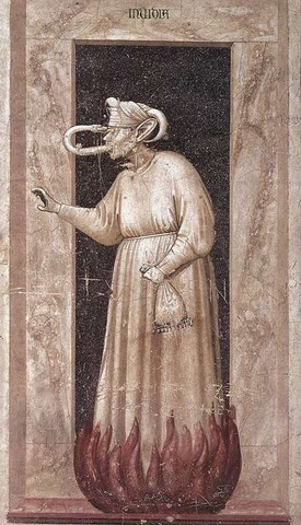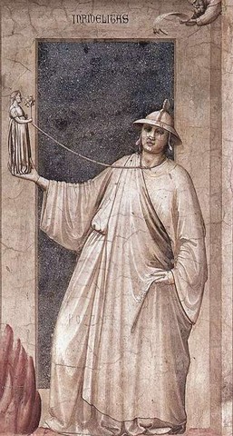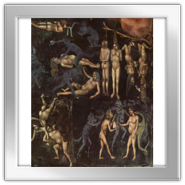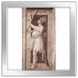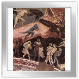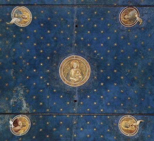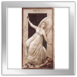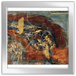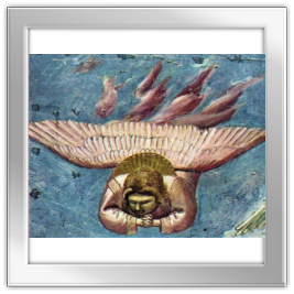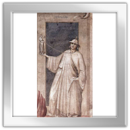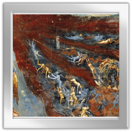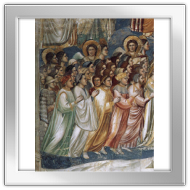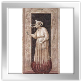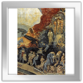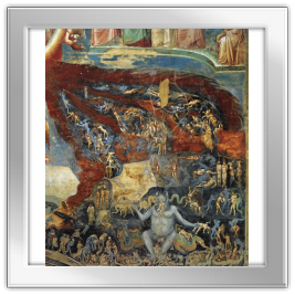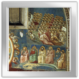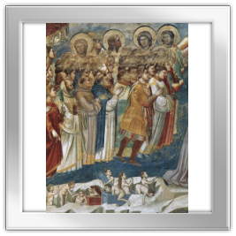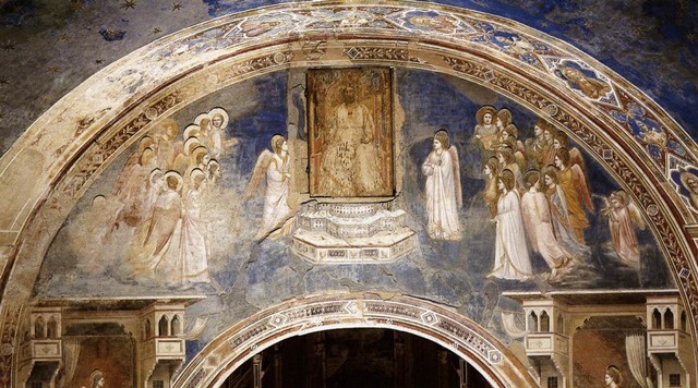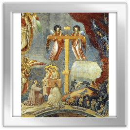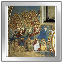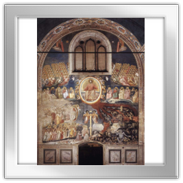 Росписи стен в капелле дель Арена. Страшный суд 1306 год. На входной стене западной части церкви, находится большая сцена Страшного суда, традиционно трактованная - как триумф Христа. Как и в «Божественной комедии» Данте, здесь в этих настенных росписях сочетаются две абсолютно разные системы художественного мышления: новая и старая, ренессансная и средневековая; так же как Данте Джотто благодаря этому сопоставлению достигает колоссальной силы художественного воздействия, напоминая людям о вечности и о возмездии. И трижды, как благовест, звучит для него роспись алтарной арки.