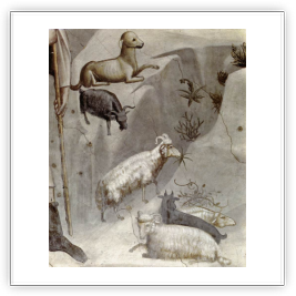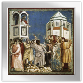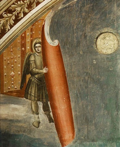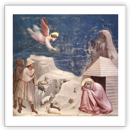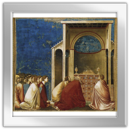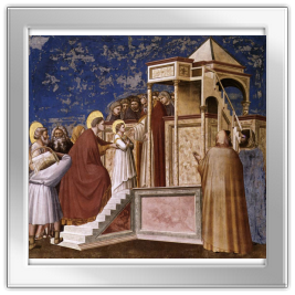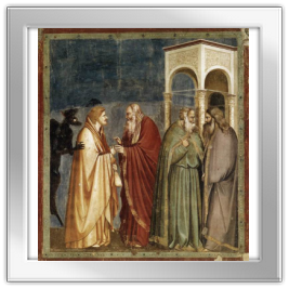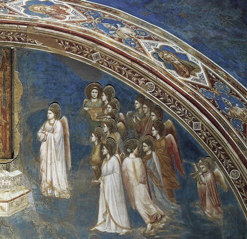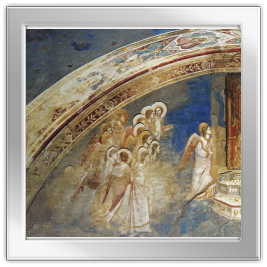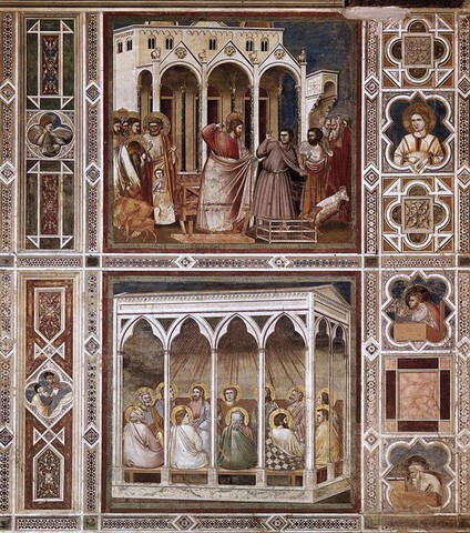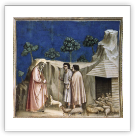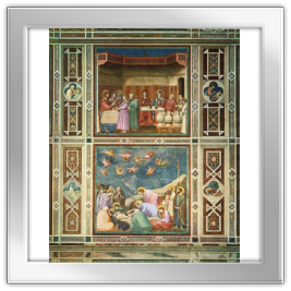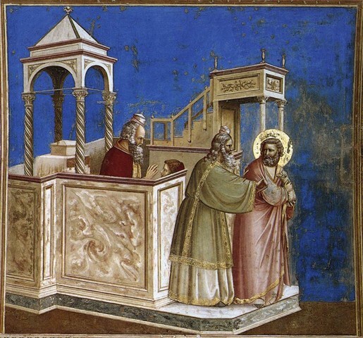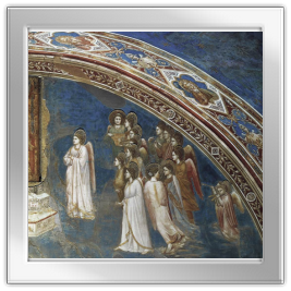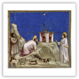 Росписи, повествующие о жизни Иоакима и Анны. (1304-1306 гг.) Настенные росписи Джотто, созданные в капелле дель Арена (Скровеньи) в Падуе были отмечены появлением новых сюжетов, кроме Евангельских. Речь идет о повествовании жития Иоакима и Анны — родителей Марии, Матери Христа, Сюжеты были взяты из апокрифов - протоевангелия Иакова «История Иакова о рождении Марии» и «Золотой легенды». Тематика этих росписей как нельзя лучше подходила Джотто. Он любил показывать на своих творениях природу и спокойную жизнь за чертой города, а также искренние, благородные чувства простых людей. Но мир, который показывает Джотто, чрезвычайно реален и в нем нет недостатка ни в трудностях, ни в испытаниях.