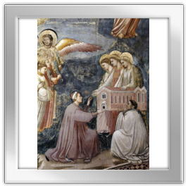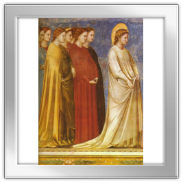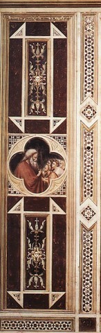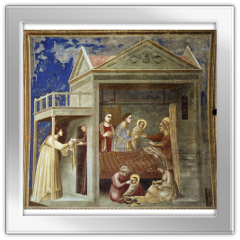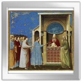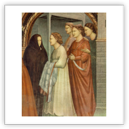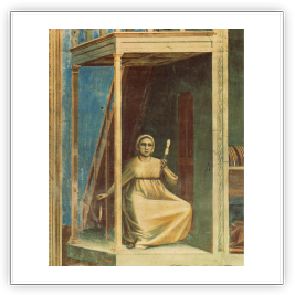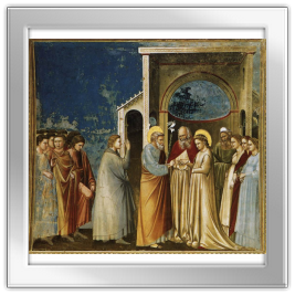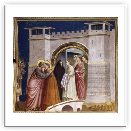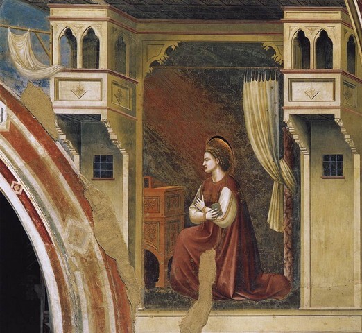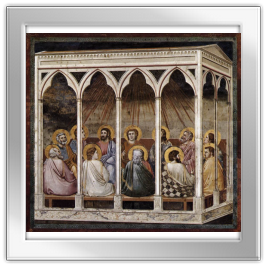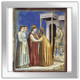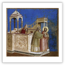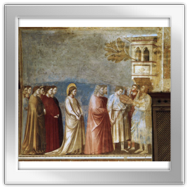 Настенные росписи, повествующие о житие Девы Марии. (1304-1306 гг.) На левой стене капеллы дель Арена находятся шесть росписей, изображающих сцены из жизни Девы Марии. Эти фрески как бы продолжают историю Иоакима и Анны — родителей Марии, которые находятся на противоположной стене. Эта серия также сохраняет верность принципу единственного архитектонического элемента.