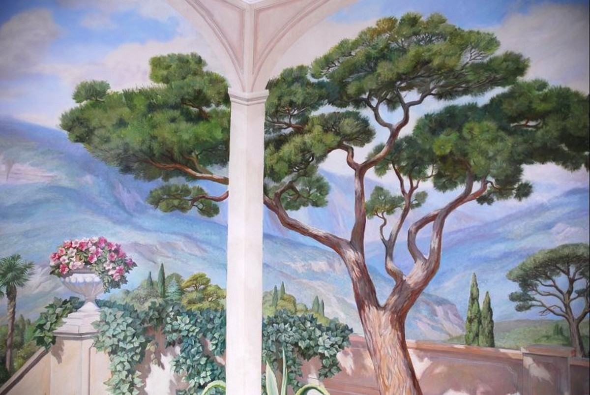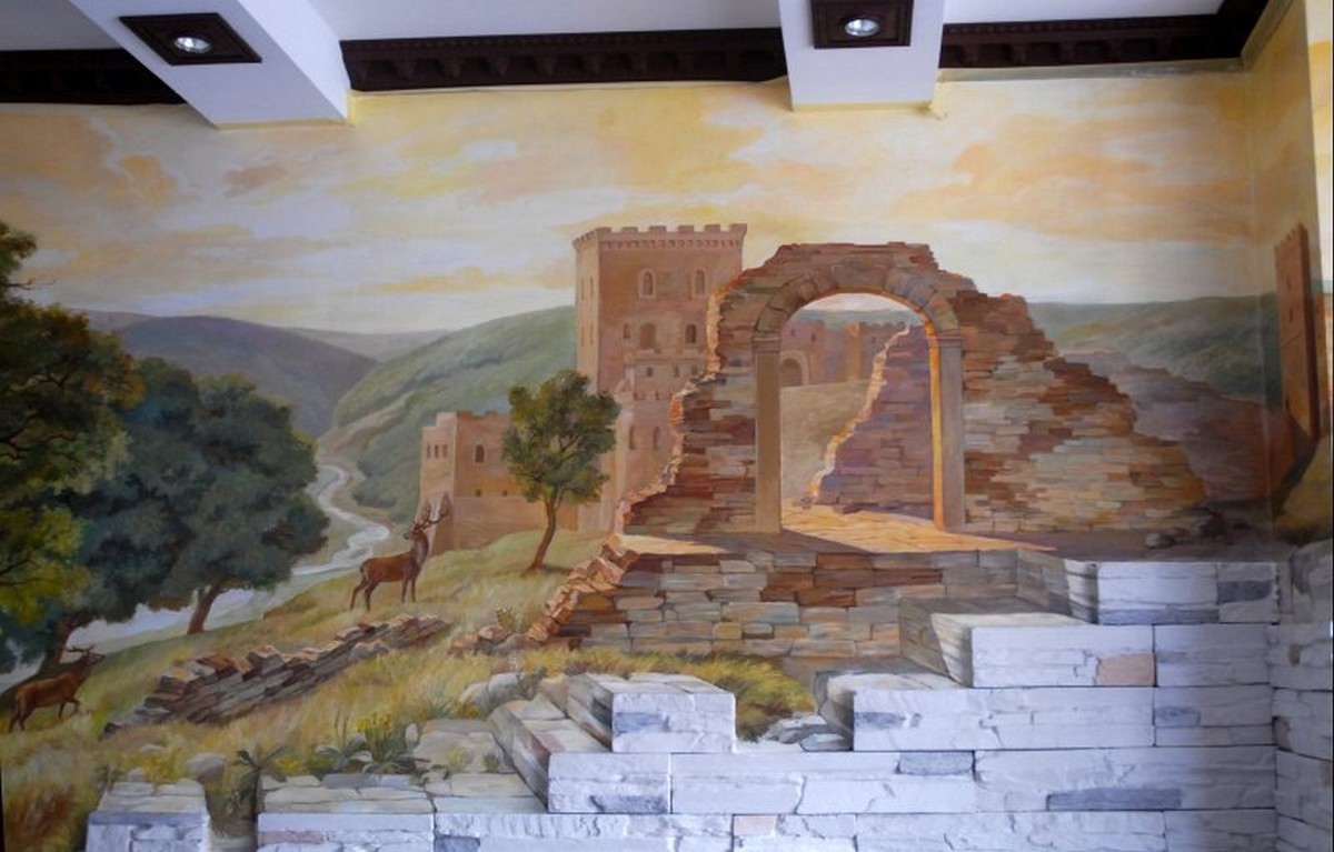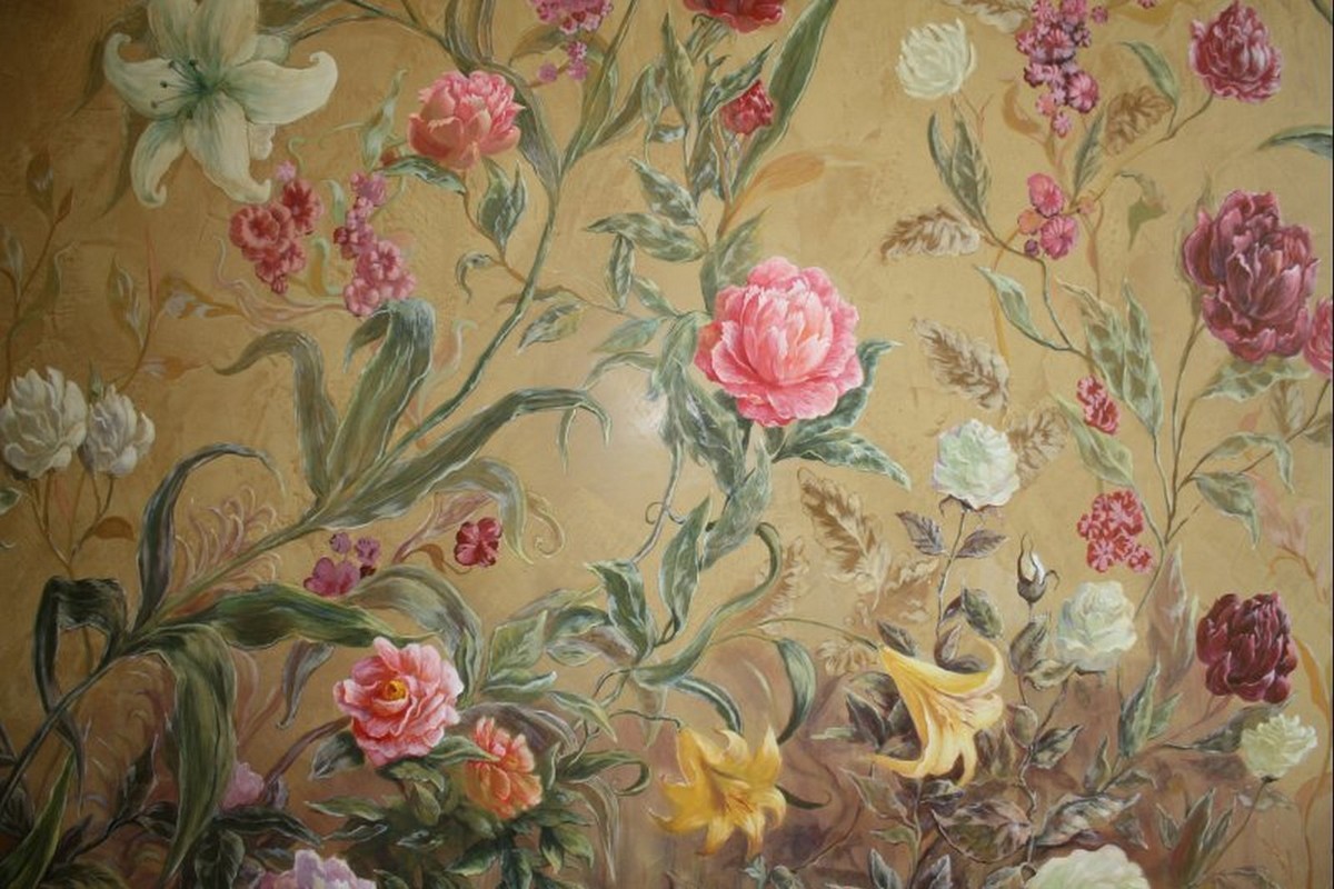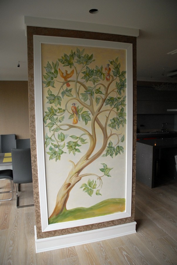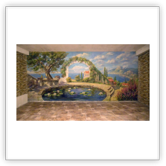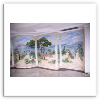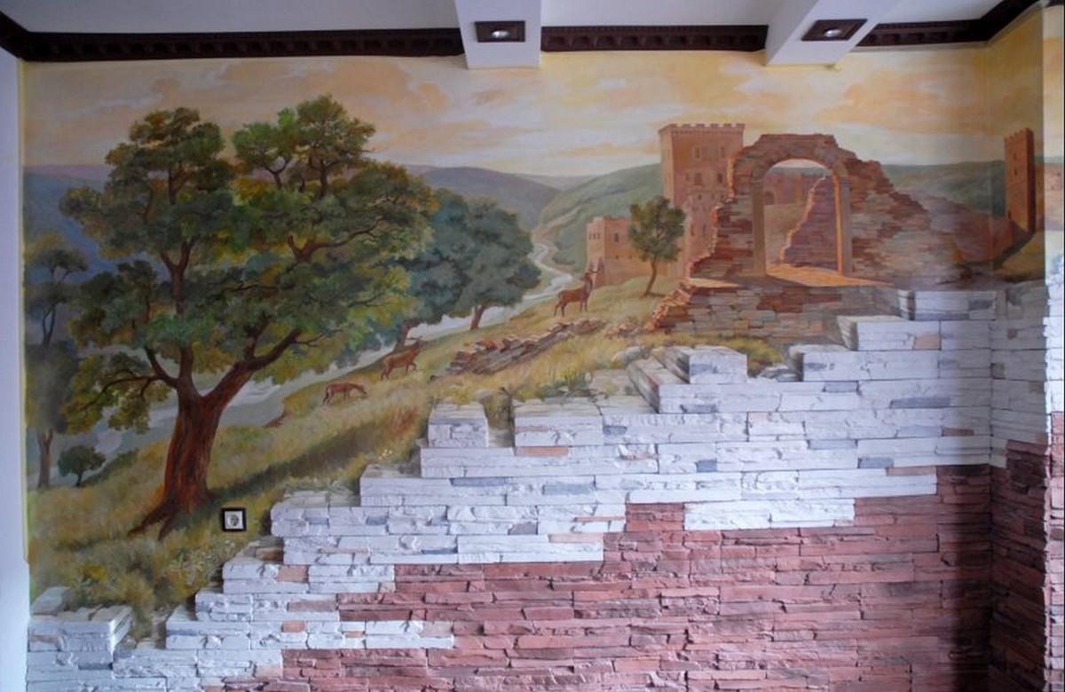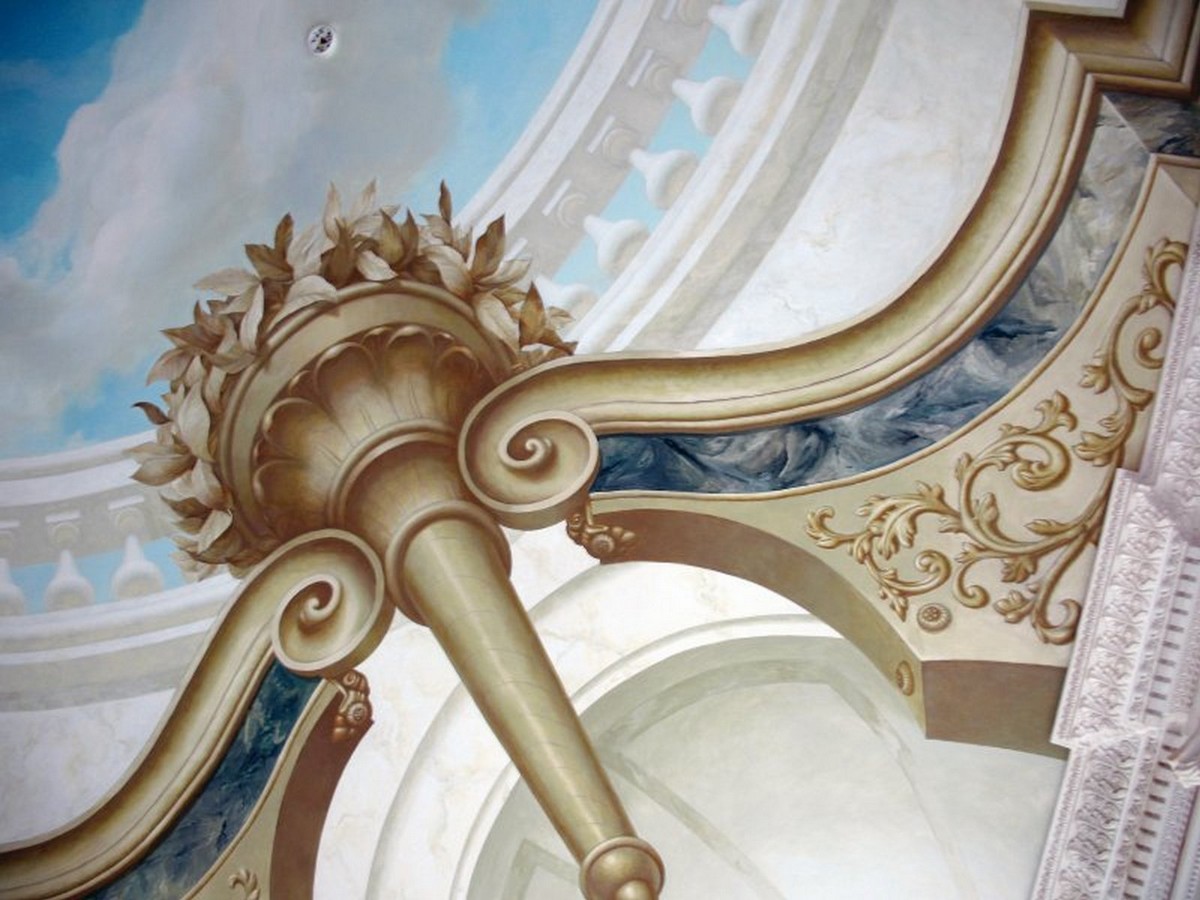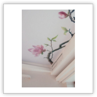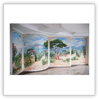 - Художественная роспись интерьера (рисунки на стенах): роспись стен, потолков и мебели, фреска (affresco), картинки обманки (стена рисунок).