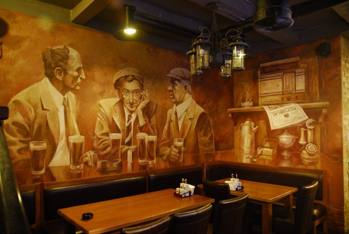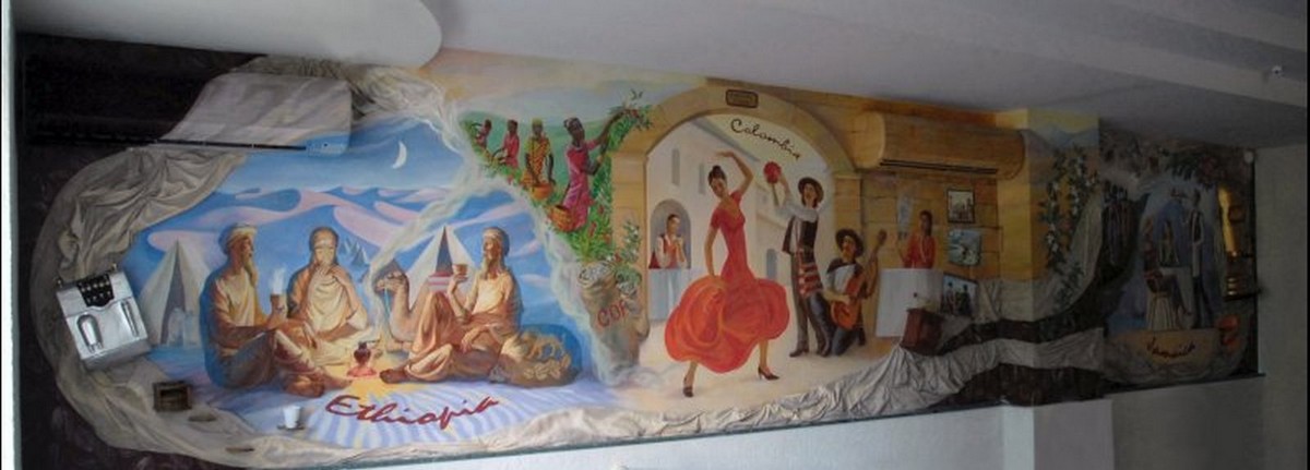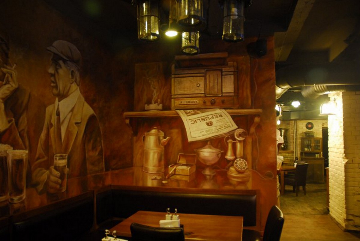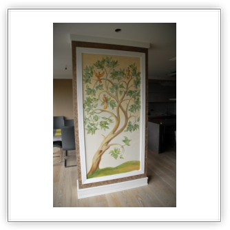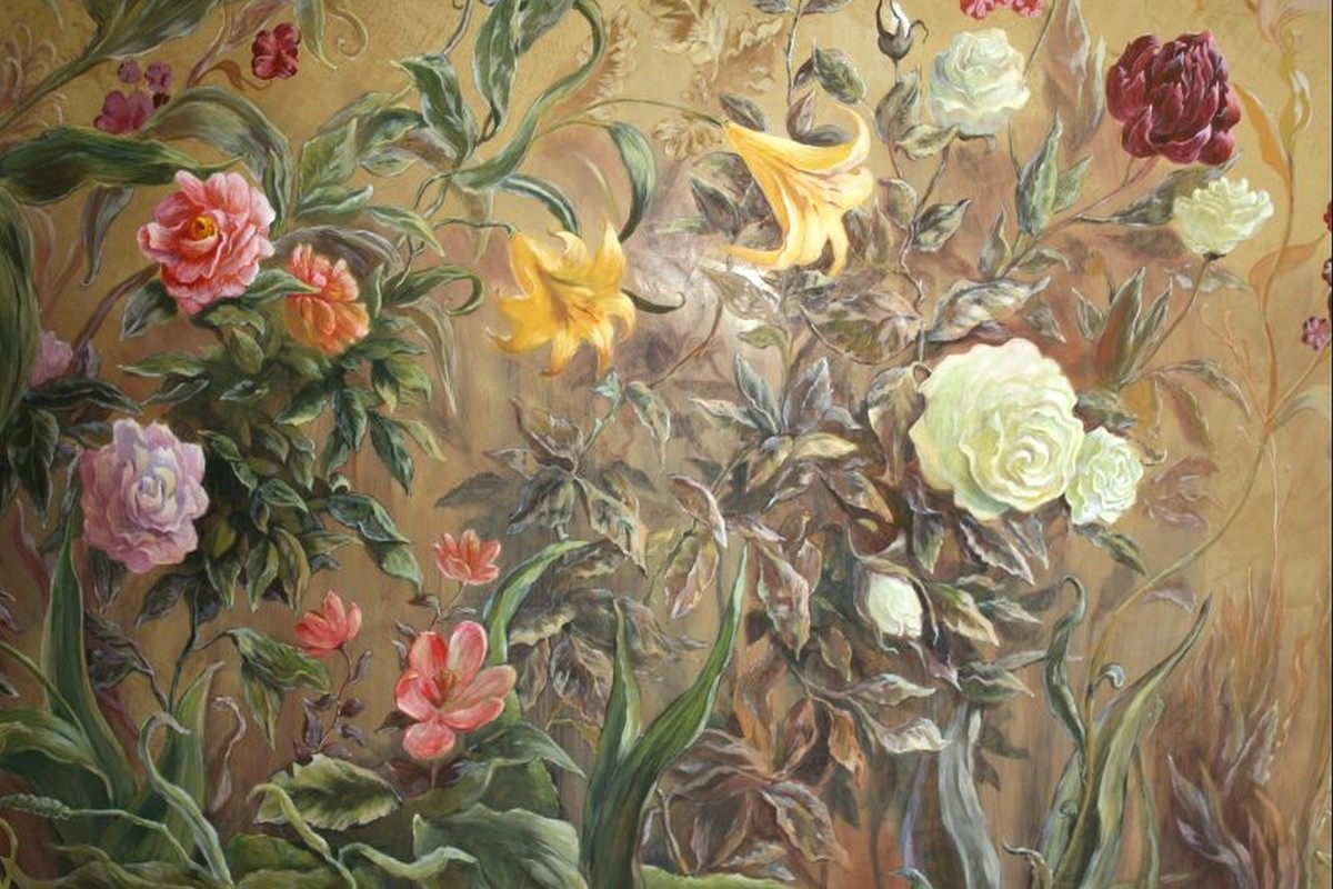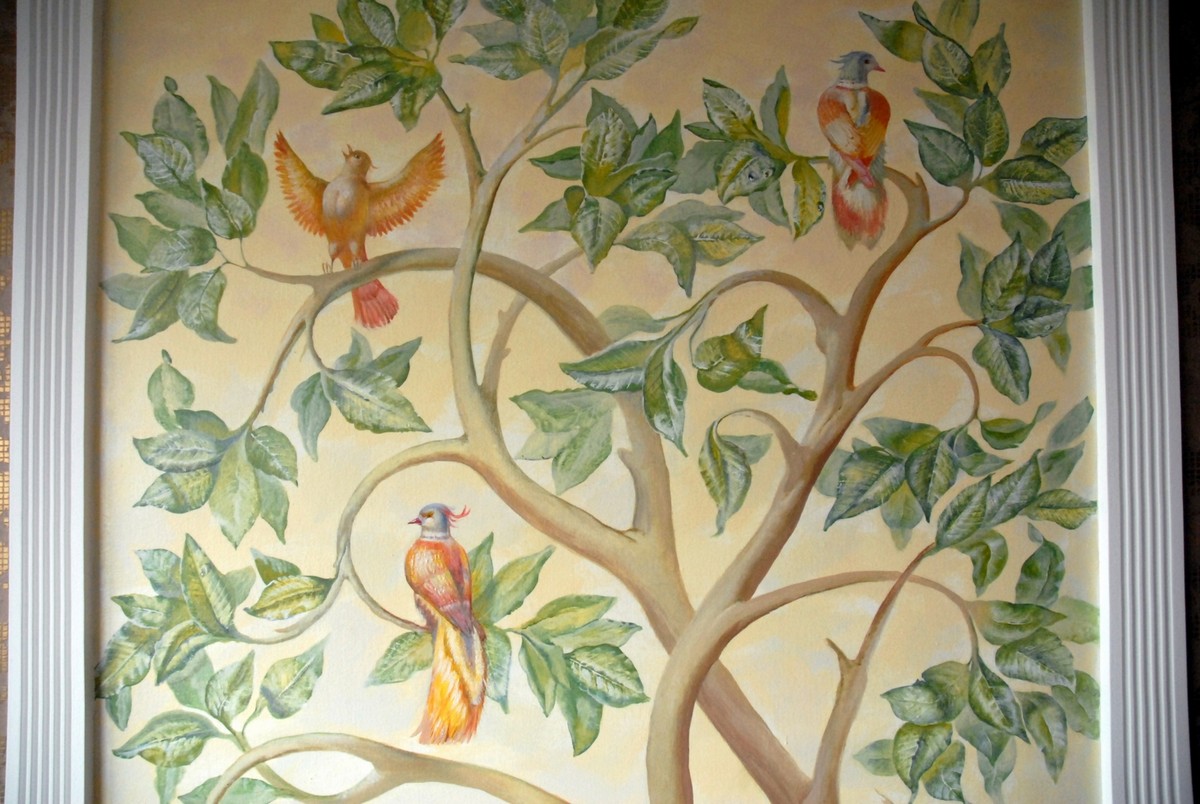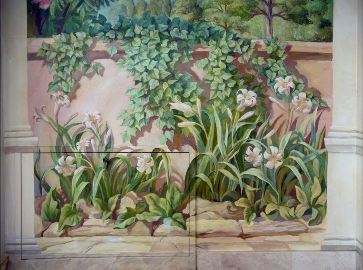 - Художественная роспись интерьера (рисунки на стенах): роспись стен, потолков и мебели, фреска (affresco), картинки обманки (стена рисунок).